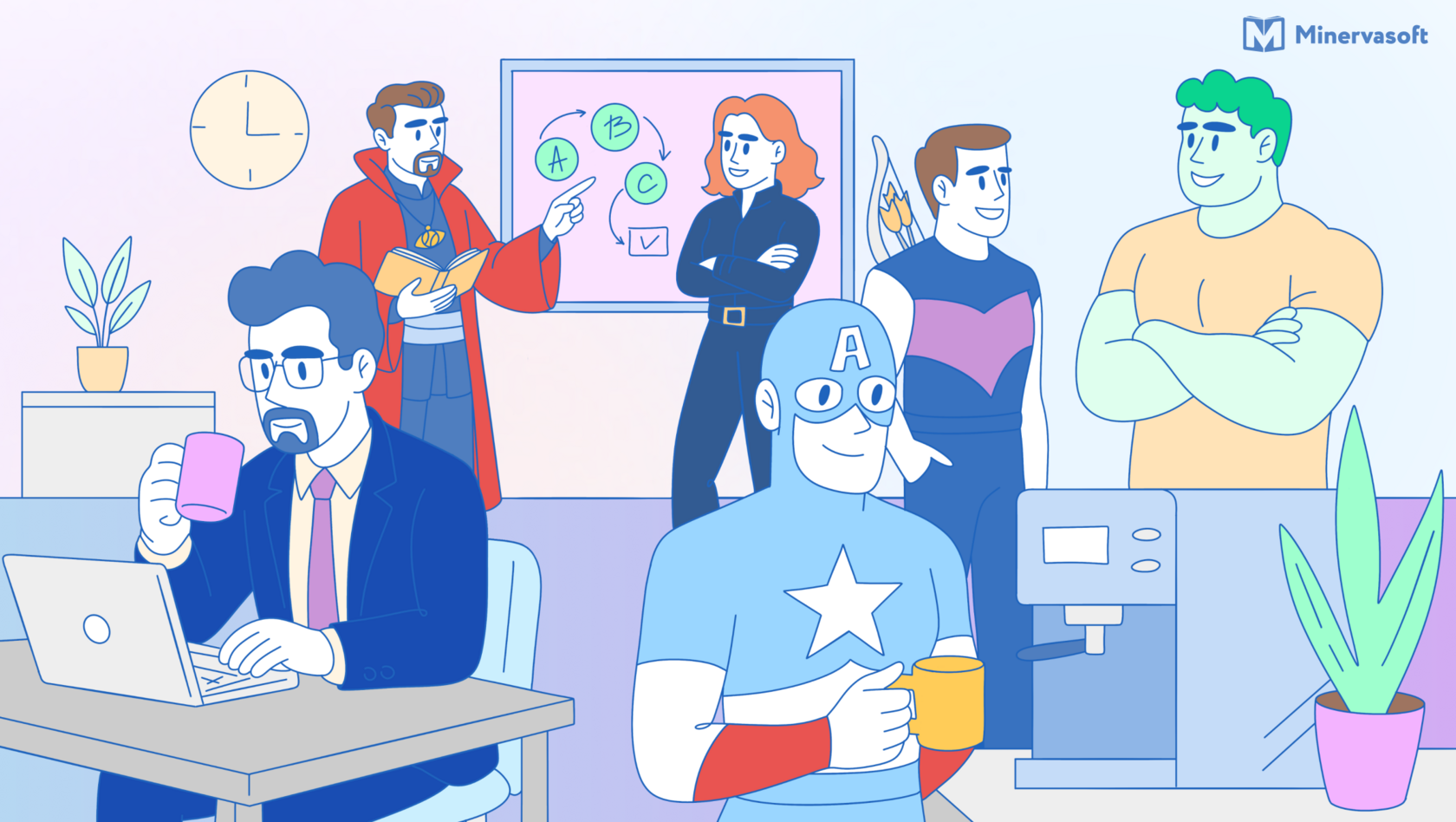 - Создать в Minerva Learn обучающий курс «Читай между строк: как понять эмоции коллег без слов и предотвратить конфликт», а потом попросить всех мстителей его пройти.