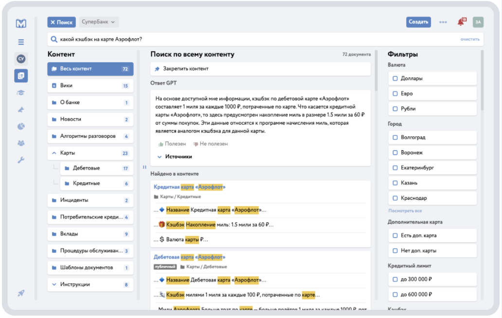 - Быстрее поиск информации и меньше времени на обработку обращений.