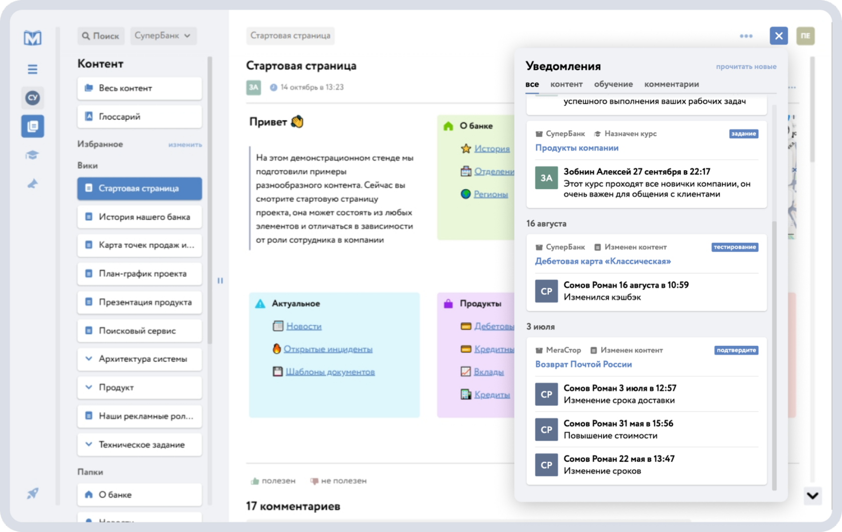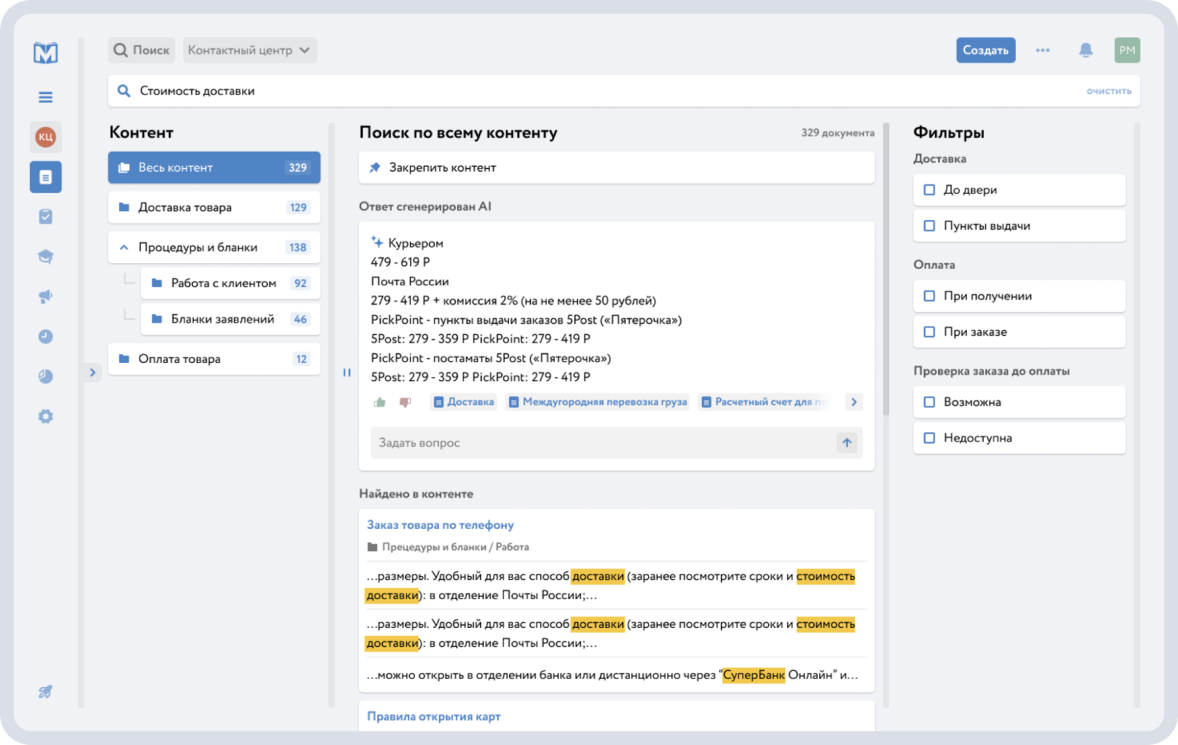 - накоплен большой объём внутренней экспертности, которая хранится в разных местах — чатах, облачных документах и других ресурсах;